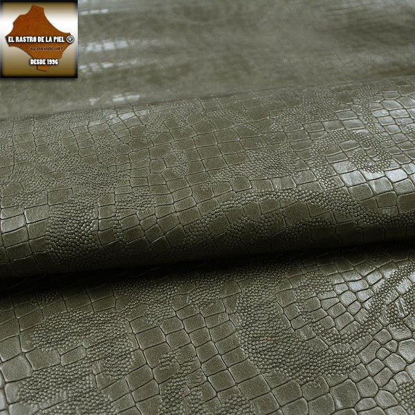 Cowleather Embossed Coco in Taupe Color Castellano Background